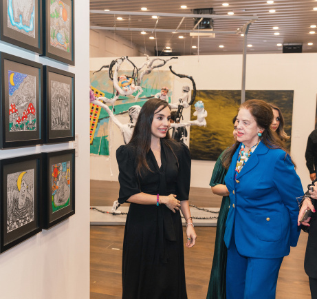 Çıxışlardan sonra Leyla Əliyeva, Arzu Əliyeva və iştirakçılar sərgidə nümayiş etdirilən əsərlərlə tanış olublar.