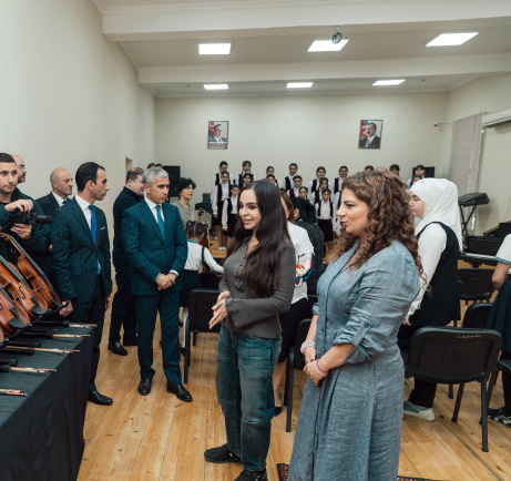 It was noted that the music school, which is over 70 years old, teaches piano, violin, tar, accordion, kamancha, drum and singer specialties. The educational facility under the Ministry of Culture has been functioning as an eleven-year music school since 2011. Currently, more than 600 students are studying at the school. Leyla Aliyeva donated more than 30 necessary musical instruments - tar, kamancha, accordion, violin, grand piano, piano and others to the school.