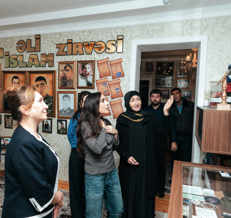 Brothers Ali and Islam Ahmadovs fell down on the same day during the Patriotic War. In accordance with the relevant Orders of the President of the Republic of Azerbaijan, Ali Ahmadov was awarded the Order “For services to the Motherland of the 3rd degree,” medals "For the Motherland", "For the liberation of Sugovushan", "For the liberation of Lachin", while Islam Ahmadov was honored with the Order “For services to the Motherland of the 3rd degree”, medals "For the Motherland", "Brave warrior" and "For the Liberation of Sugovushan". Leyla Aliyeva then visited the center for elderly “Yasha" located in the city of Mingachevir. The pensioners are engaged in various handicrafts, decorative and applied arts and other creative activities, and educational and cultural events are regularly organized for them in the center.