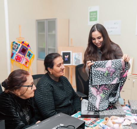 Leyla Aliyeva chatted with the elderly, viewed the handicrafts, and was informed about the content of the classes and the upcoming plans of the Center.