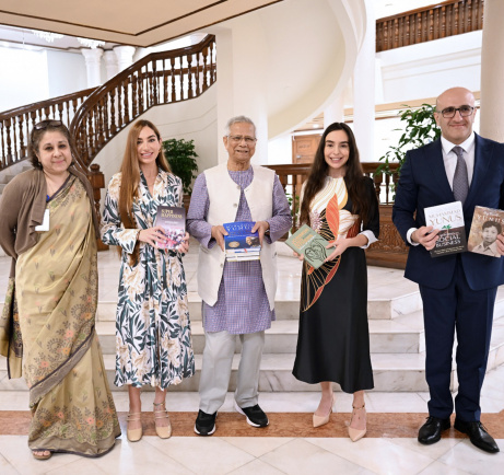 Səfər çərçivəsində Leyla Əliyeva və Arzu Əliyeva dekabrın 7-də Banqladeş Müvəqqəti Hökumətinin Baş müşaviri, dünyaşöhrətli iqtisadçı, Nobel Sülh Mükafatı laureatı professor Məhəmməd Yunusla görüşüblər.
