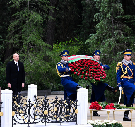 Prezident İlham Əliyev Ulu Öndərin məzarı önünə əklil qoydu.