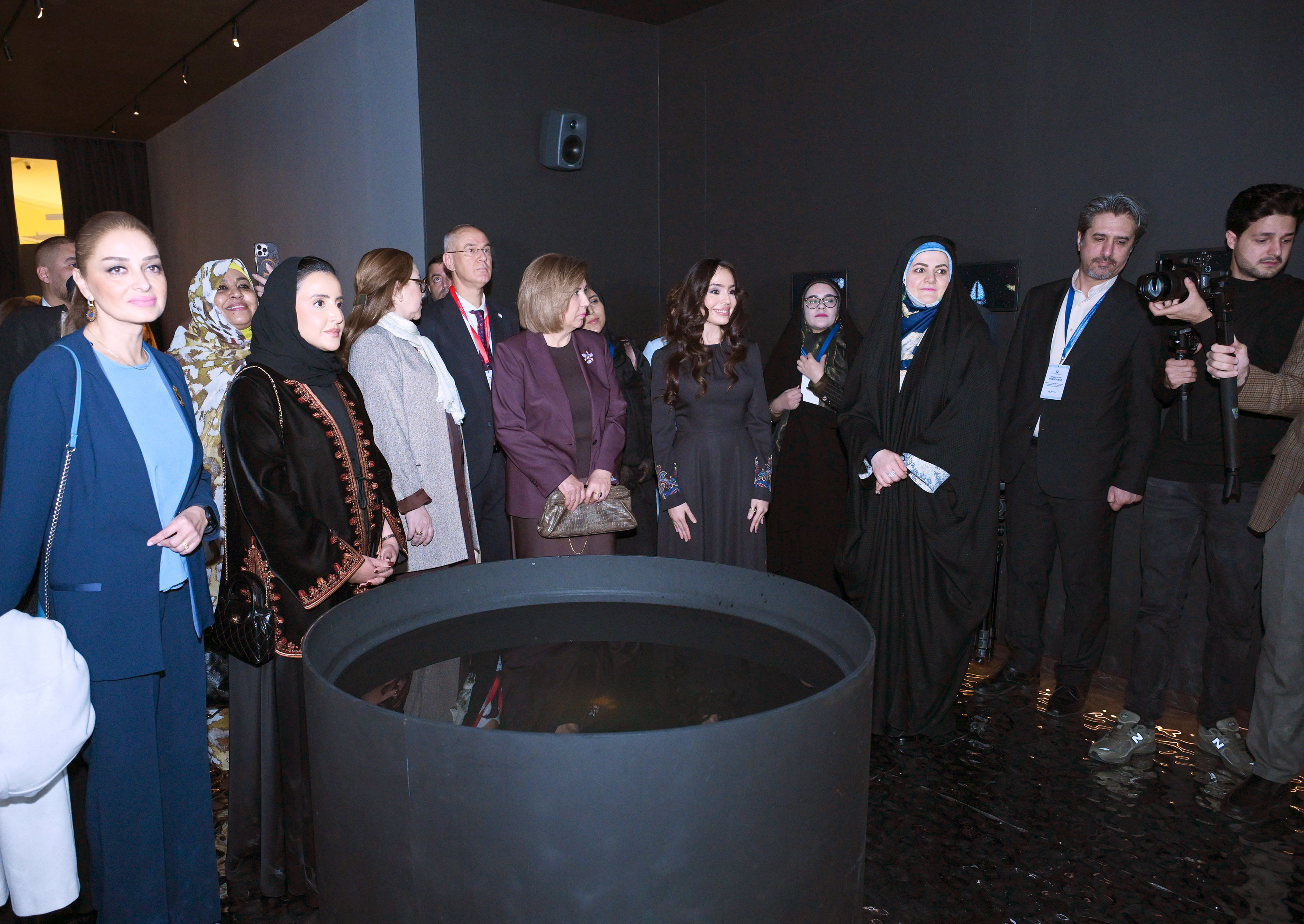 Heydər Əliyev Fondunun vitse-prezidenti, IDEA İctimai Birliyinin təsisçisi və rəhbəri Leyla Əliyeva qonaqlarla birgə su ehtiyatlarının qorunmasına çağırış edən “Mənim dənizlərim, mənim okeanlarım” sərgisini ziyarət edib.