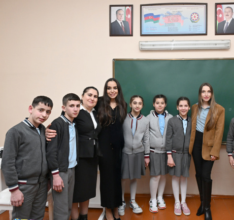 Səfər çərçivəsində Leyla Əliyeva və Alena Əliyeva Quba şəhərində internat tipli ümumtəhsil məktəbini və STEAM mərkəzini ziyarət ediblər.