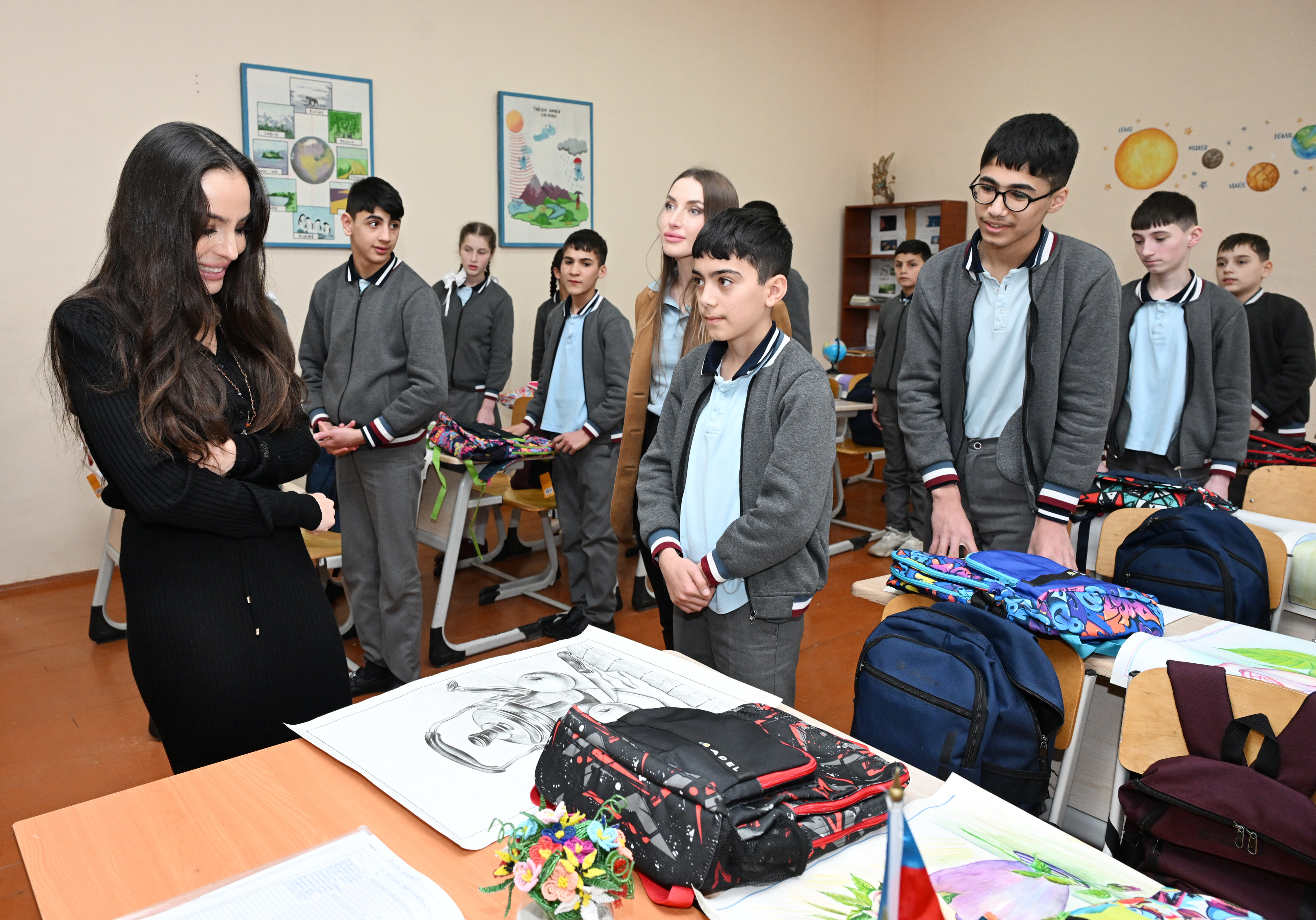 Əvvəlcə Quba şəhər ümumi təyinatlı internat tipli ümumtəhsil məktəbinə baş çəkilib. Bildirilib ki, burada 79-u oğlan, 35-i qız olmaqla 114 məktəbli təhsil alır. Leyla Əliyeva və Alena Əliyeva internat məktəbində yaradılan şəraitlə tanış olub, uşaqlarla səmimi söhbət edib, onların məşğələ proseslərini izləyib, fotolar çəkdirib və şagirdlərə məktəbli ləvazimatları təqdim ediblər. Məktəbdə şagirdlər tərəfindən hazırlanan mədəni proqram təqdim olunub, şeirlər səsləndirilib, mahnılar ifa olunub.