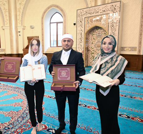 Sonda Leyla Əliyeva və Alena Əliyevaya “Qurani-Kərim” hədiyyə olunub.
