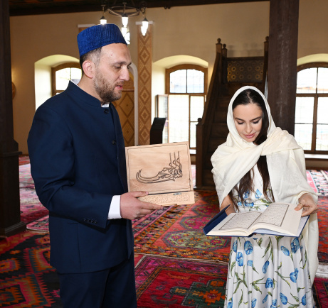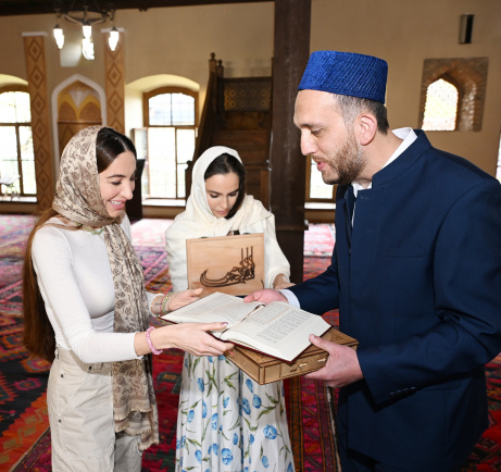 Sonda Leyla Əliyevaya və Arzu Əliyevaya "Qurani-Kərim” hədiyyə olunub.