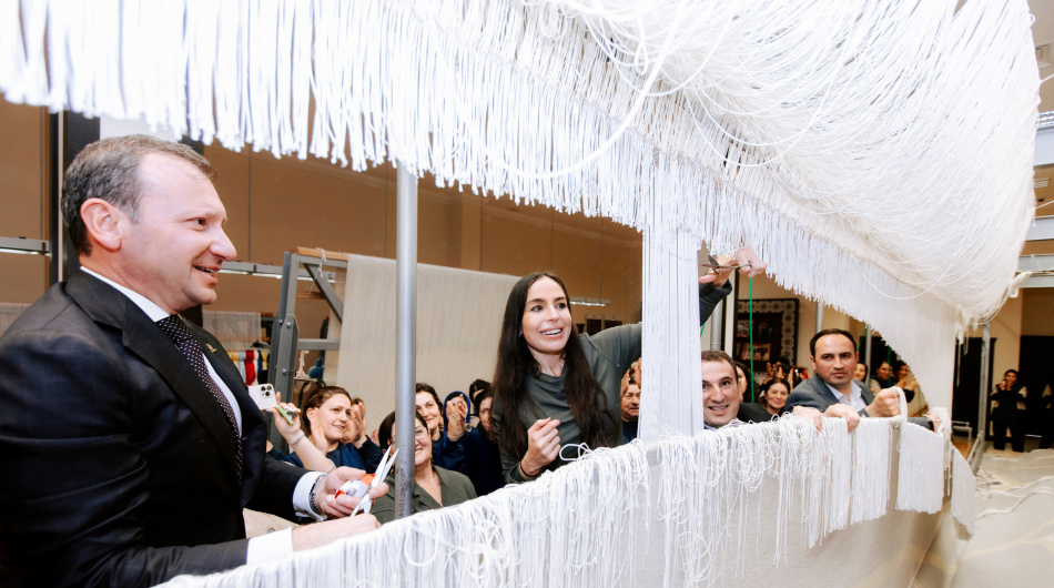 Cutting ceremony held for circular hand-woven carpet created by "Azerkhalcha" for Shusha Mosque