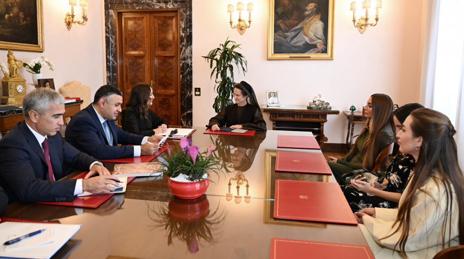 Oktyabrın 17-də Azərbaycan Respublikasının Birinci vitse-prezidenti Mehriban Əliyeva Vatikan şəhər-dövlətinin qubernatorluğunun prezidenti, rahibə Raffaella Petrini ilə görüşüb.