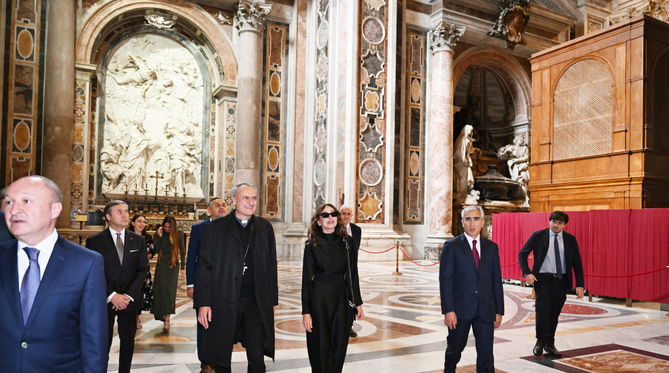 Birinci vitse-prezident Mehriban Əliyeva Vatikanda Müqəddəs Pyotr Bazilikasında görülmüş bərpa işləri ilə tanış olub