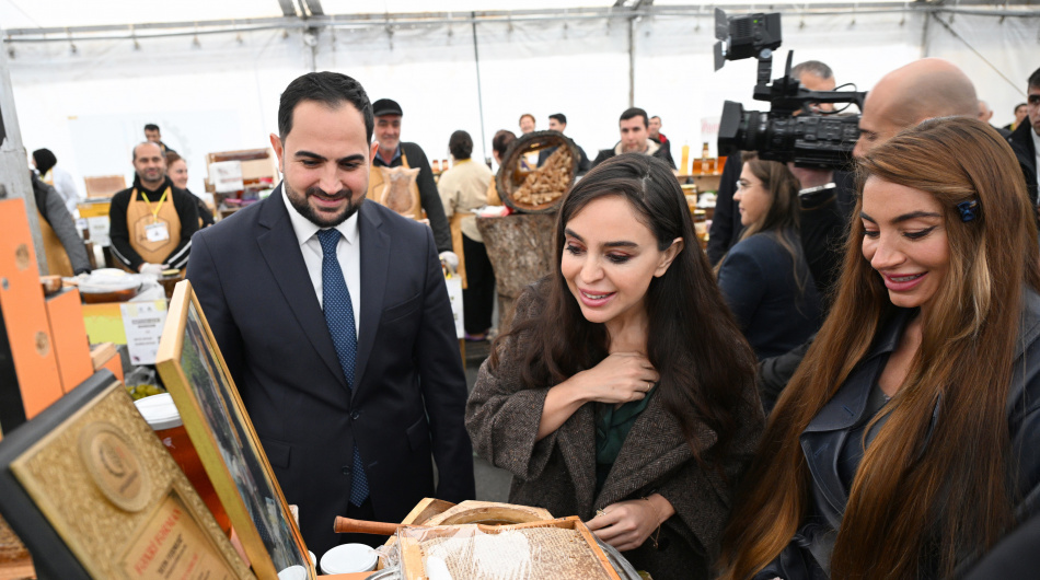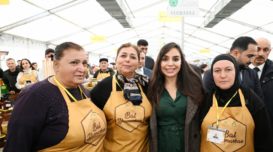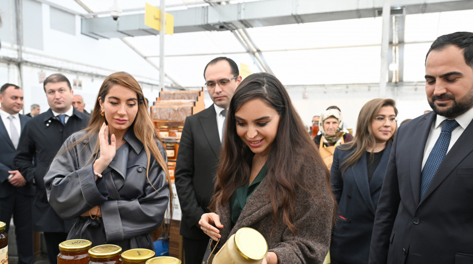Leyla Əliyeva və Arzu Əliyeva arıçılıq məhsullarının sərgi-satış yarmarkasını ziyarət ediblər